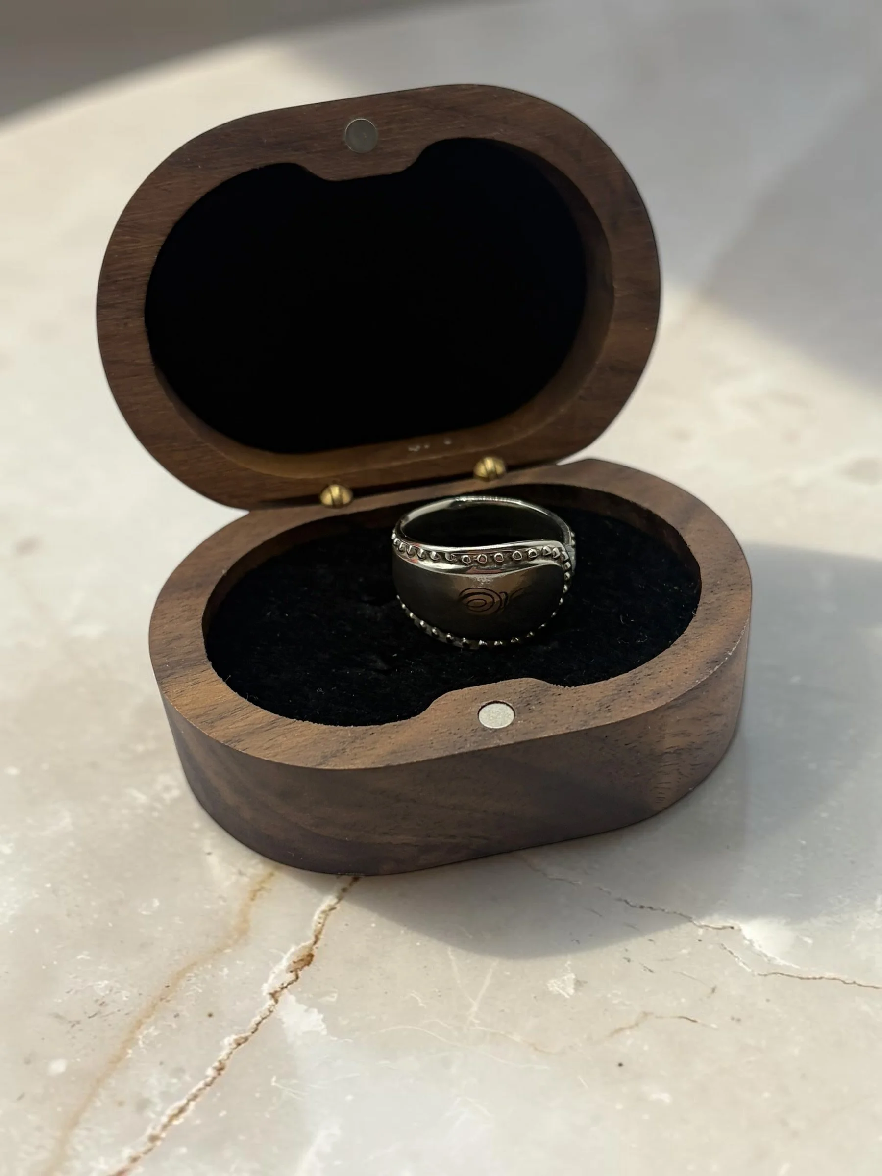Deze vintage ring is verzilverd en maak ik volledig naar wens op maat. Ik graveer met mijn diode laser een datum, berichtje of letter(s) naar keuze aan de binnen en/of buitenkant🖊️💍